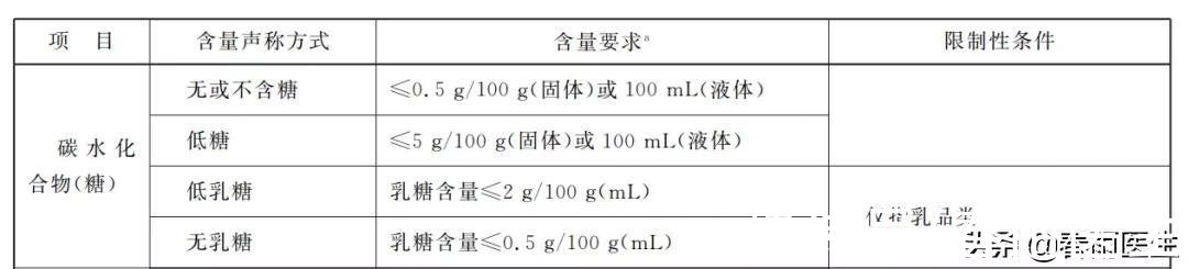 “无糖”和“0糖”的概念相似。根据国家《预包装食品营养标签通则》(GB—2011),“无糖”的要求是指每100g或100ml固体或流质食品不超过0.5%(即0.5g),“低糖”是指固体或流质食品每100g或100ml含糖量不超过5%(即5g)。